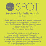 PLEASE NOTE: Because of the ingredients we use (like frankincense and oil of oregano) Spot has what some call a medicinal scent. While this scent might not be used as your new perfume, it is a powerhouse for helping to heal irritations.