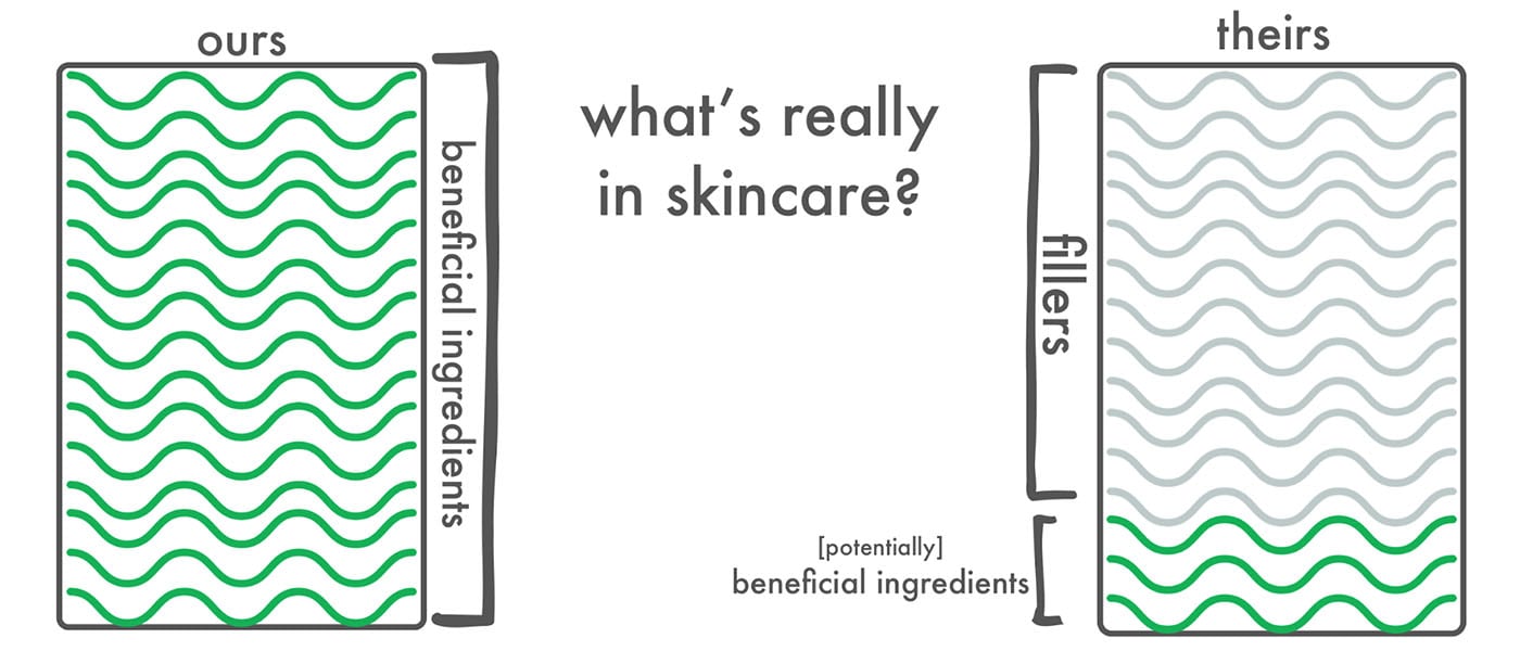 Most products contain 50-75% water and other fillers. This dilutes the product and irritates the skin.